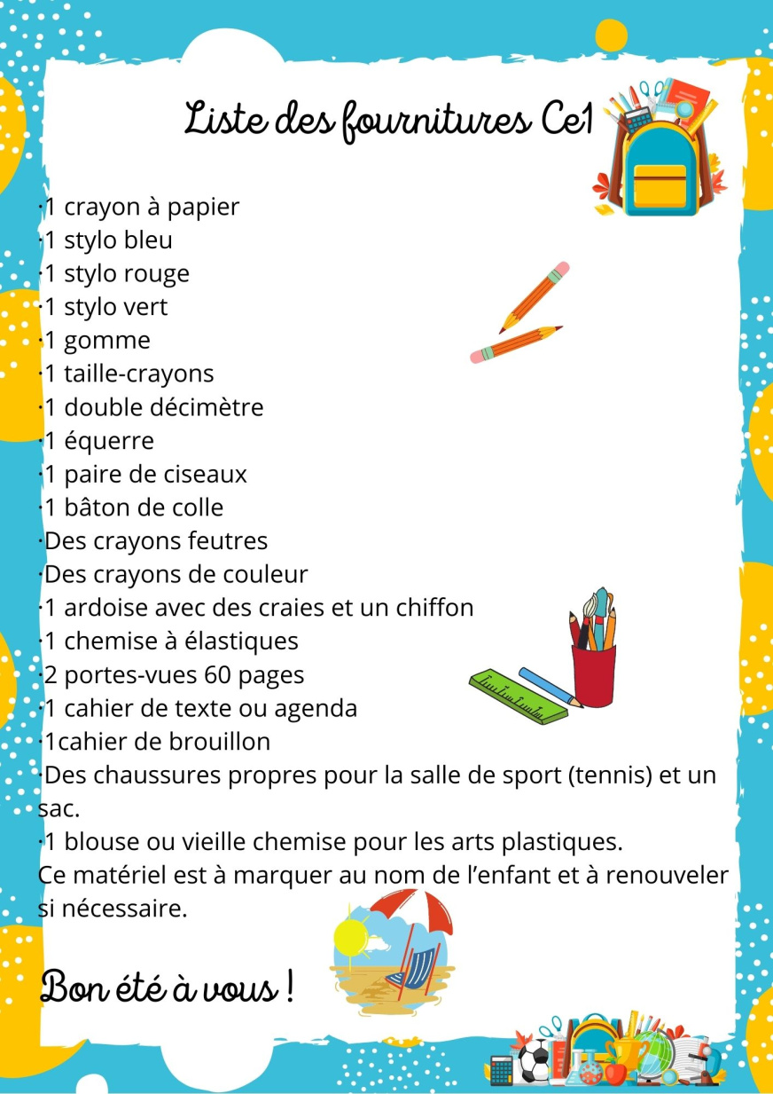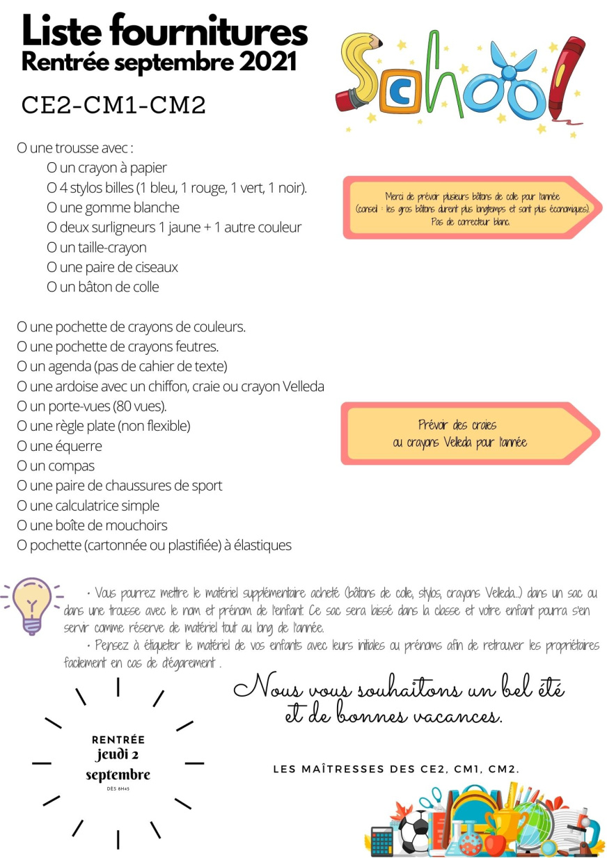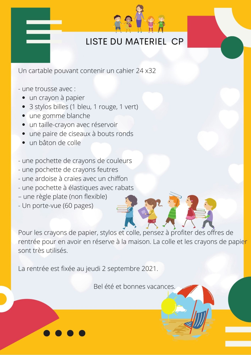 NB : pour les classes de maternelle, la liste sera donnée par les enseignants la semaine de la rentrée.
